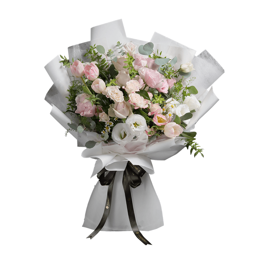 商品簡介:白色的純潔與粉色的柔情訴說少女的細膩心思,每一朵花都猶如少女的夢想,在愛的灌溉下溫暖綻放,最適合特殊時刻的心意傳遞。